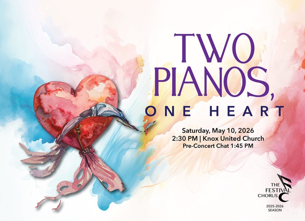 Love songs from the Elizabethan court to the streets of New York — with two pianos in between! The concluding concert of the season is sure to delight with internationally acclaimed Vancouver- based artists, the Bergmann Duo, featuring Brahms’ charming Liebeslieder Waltzes and Variations on a Theme by Haydn as well as a suite of songs from Bernstein’s West Side Story.